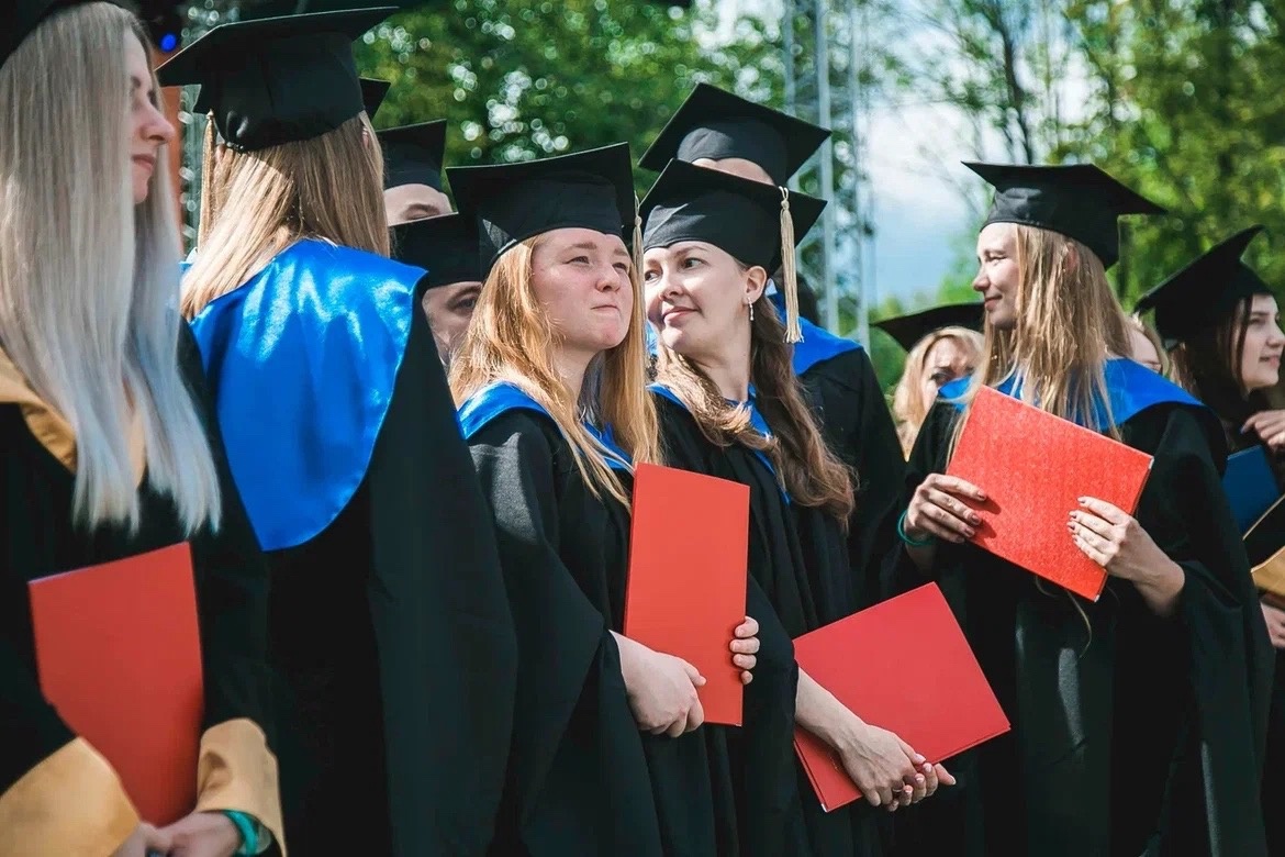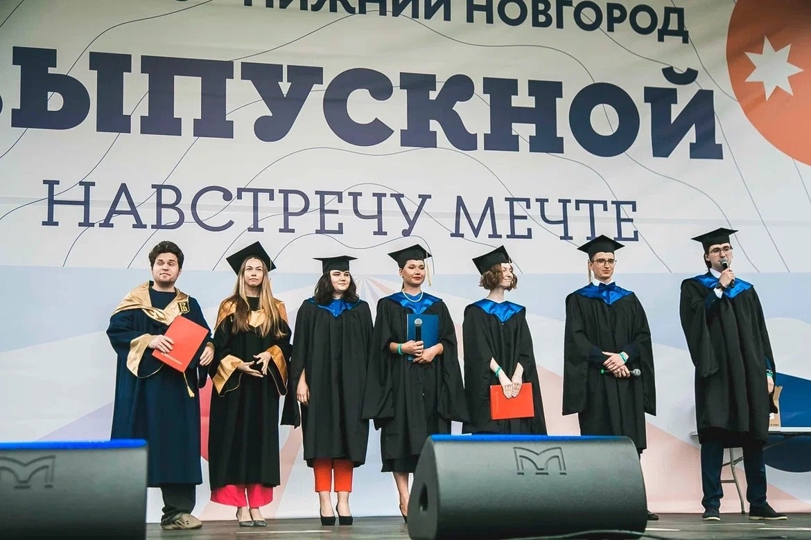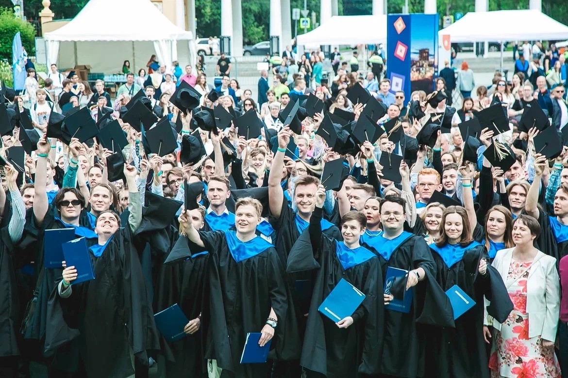 Вручение дипломов, черные мантии, вдохновляющие речи наставников и по традиции подбрасывание в воздух шапочек магистров — все это проходило на центральной площади парка.