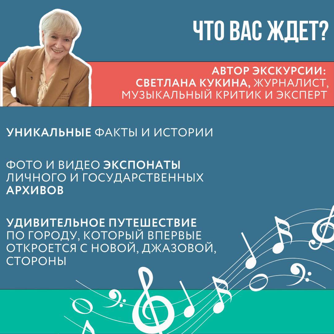 Автор этой уникальной экскурсии джаз-гид — журналист, критик, эксперт Светлана Кукина.