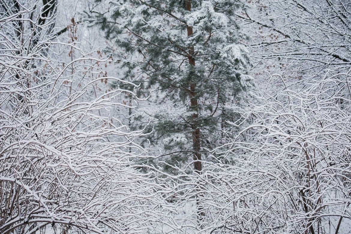 Только в парке, в окружении природы можно вдоволь любоваться заснеженной сказкой.