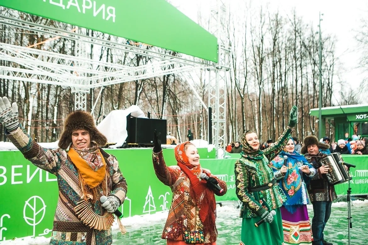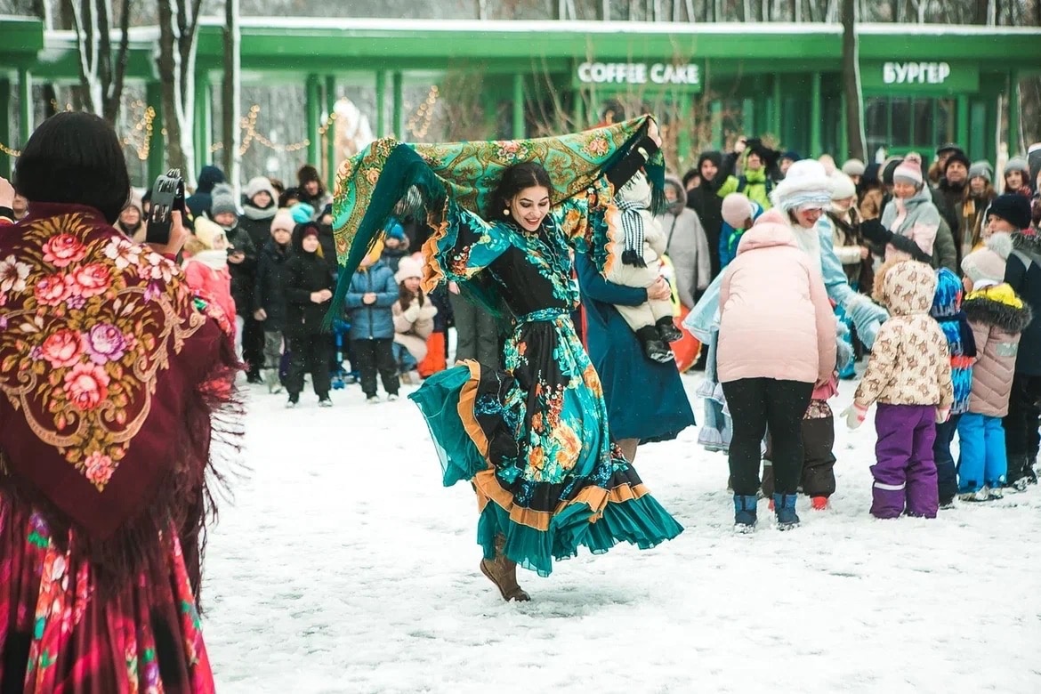 Под шикарный снегопад с разлапистыми хлопьями начался сегодняшний праздник. Но как только раздались первые звуки разудалого цыганского ансамбля «Бричка» снег «выключили», небо просветлело. И Масленица развернулась во всю центральную площадь парка!