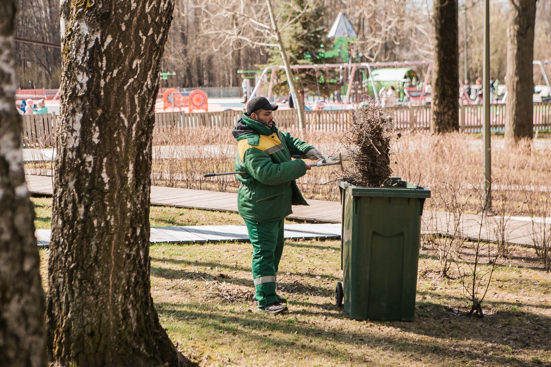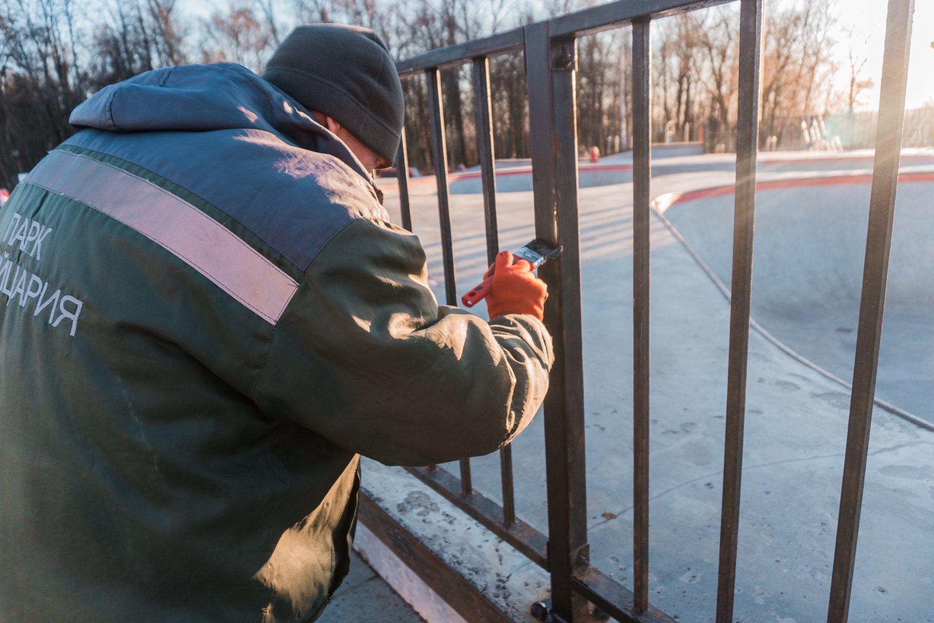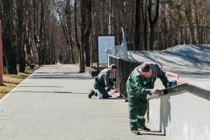 В парке кипит работа: скейт‑парк прихорашивается, плитка выстраивается в стройные ряды, лавочки, урны блестят свежей краской, а газоны освобождаются от зимнего мусора. Постепенно заменяются отдельные элементы — все становится крепче, надежнее, красивее.