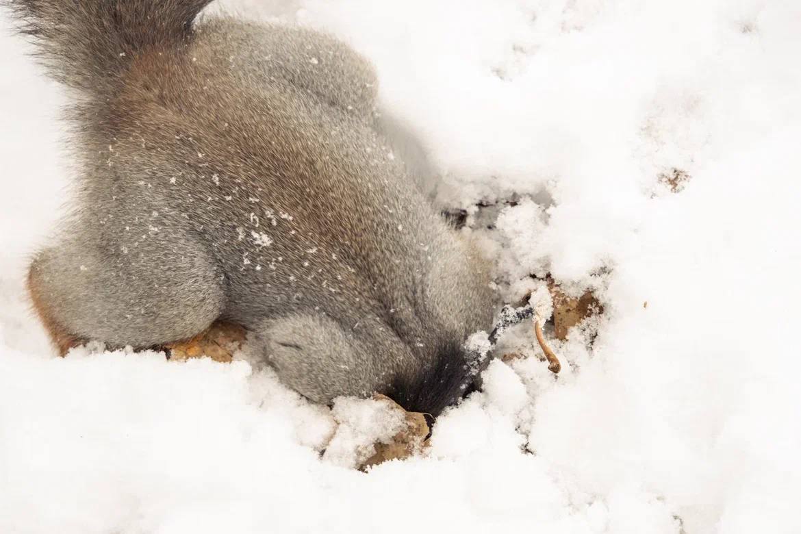 Кстати, вопреки прогнозам, орехов белками было припрятано так много, что запасы находятся и откапываются из-под снега весьма успешно.