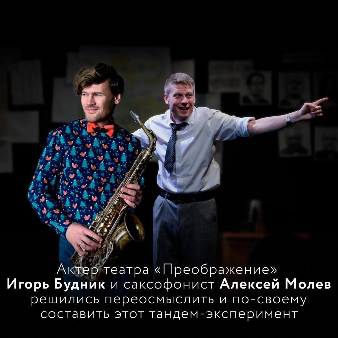 Не повторить, но исполнить свой диалог попробуют актер театра «Преображение» Игорь Будник и саксофонист Алексей Молев. Они переосмыслили и по-своему составили этот дуэт-эксперимент.