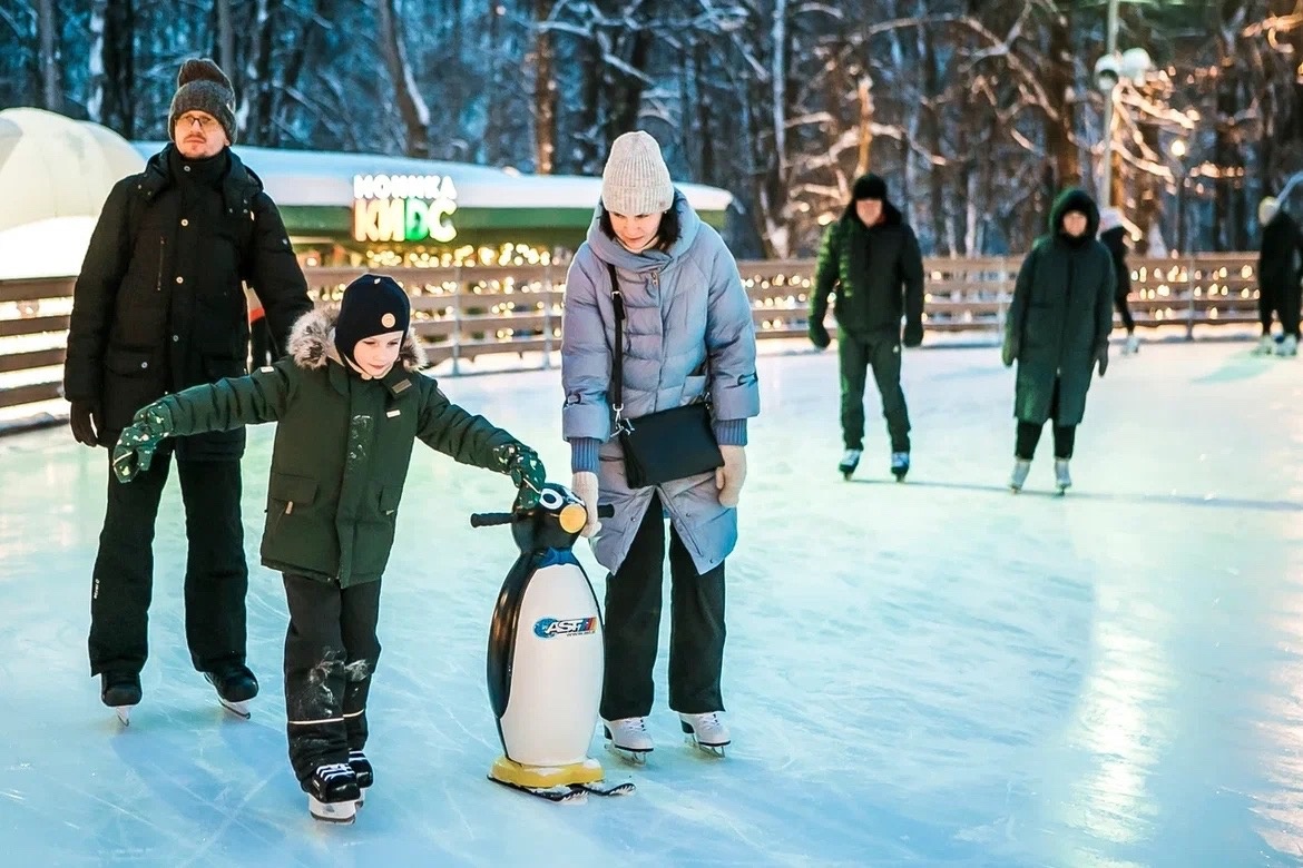 Считайте сами: музыка, теплая раздевалка, прокат коньков от 26 до 48 размеров, заточка и удобный формат покупки билетов – он-лайн на сайте или в кассе катка — и «помощники» для начинающих спортсменов.