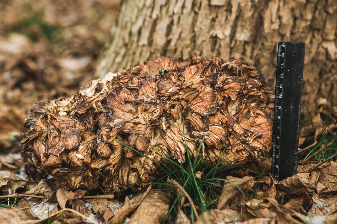 Зато гриб – настоящий красавчик, по внешнему виду напоминает завитки бараньей шерсти, по цвету – оперение экзотической птицы.