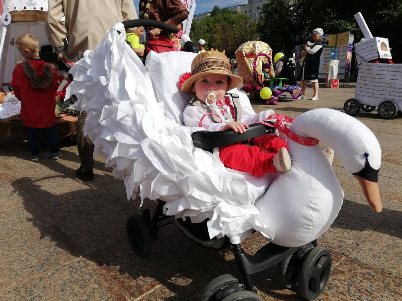 предлагаем прокатиться с улыбками под звуки погремушек по аллеям парка – от детского центра до центральной площади.