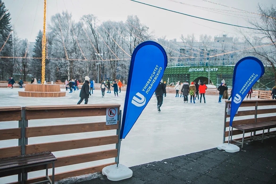 Здесь на катке студенты Университет Лобачевского | ННГУ развернули не только праздничное катание, но и костюмированное представление, и показательное выступление фигуристов.