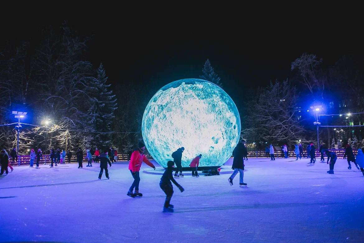 Как и главное украшение ледового комплекса в парке «Швейцария»: Луна на небе может быть растущей, убывающей, полной — на катке она всегда полна отличной атмосферы и идеальных условий для катания.