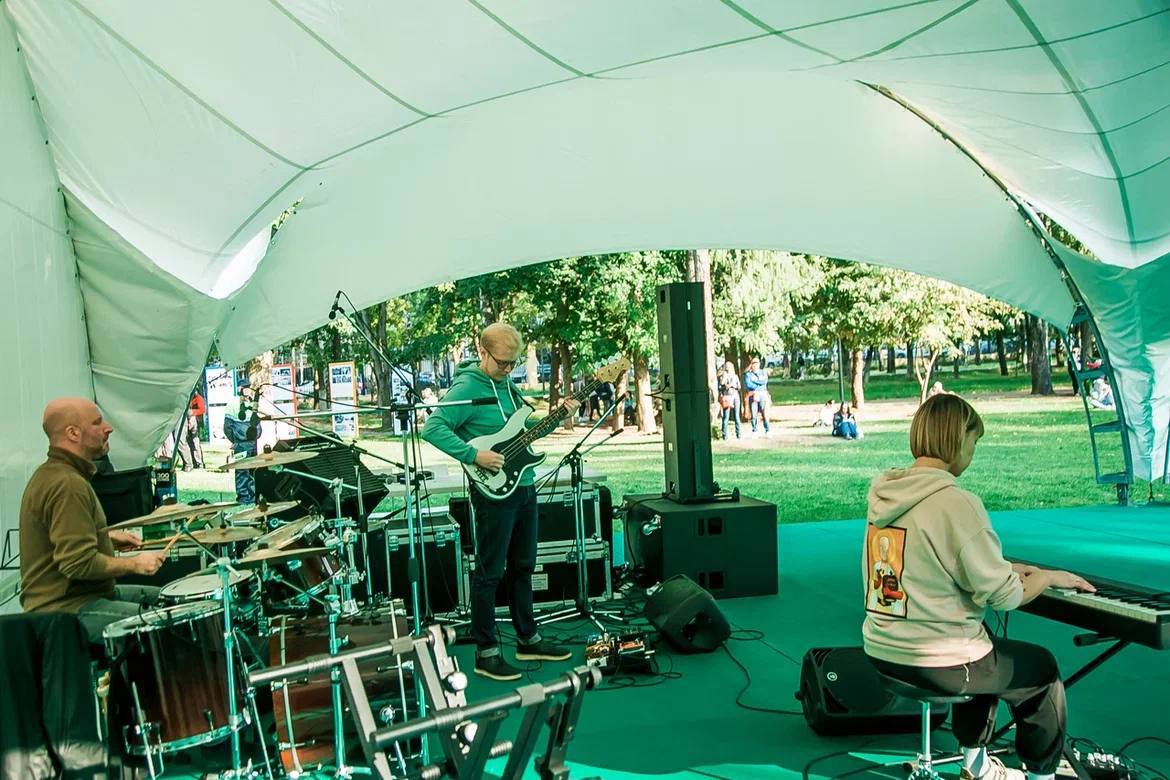 На поляне за часами гости уютно расположатся на пуфах и в шезлонгах. Сначала с 14-00 до 15-00 дети познакомятся с музыкальными инструментами и станут настоящими «детьми джаза», а с 15-00 до 16-00 все отдохнут под звуки группы «Parolibre».