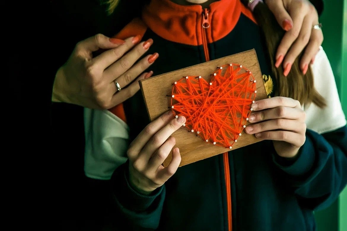 Мамы, папы и дети увлеченно создавали свои полотна в форме сердца.