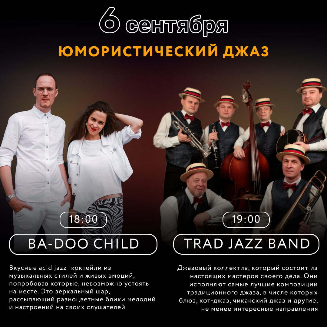 ТРИ ДНЯ — 6, 7 и 8 СЕНТЯБРЯ — лучшие музыканты, солисты, оркестры и бенды России будут дарить счастье и радость от ДЖАЗА в лучшем парке страны.