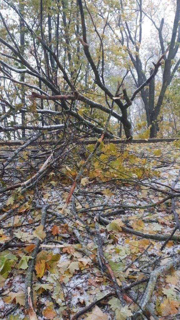 повалили деревья, разбросали ветки и части стволов.
