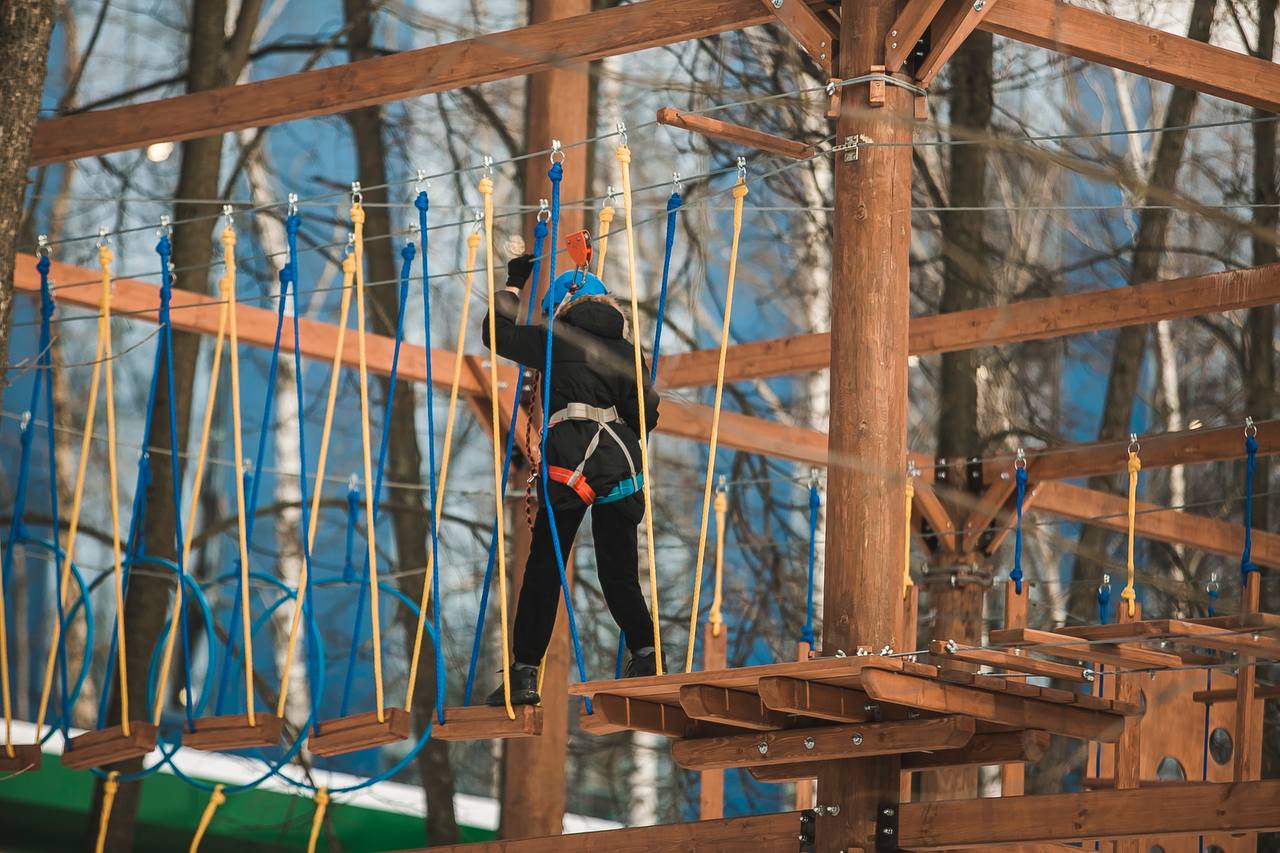 После тщательной подготовки и сезонного ремонта веревочный парк готов радовать гостей «Швейцарии» воздушной гимнастикой и яркими эмоциями.