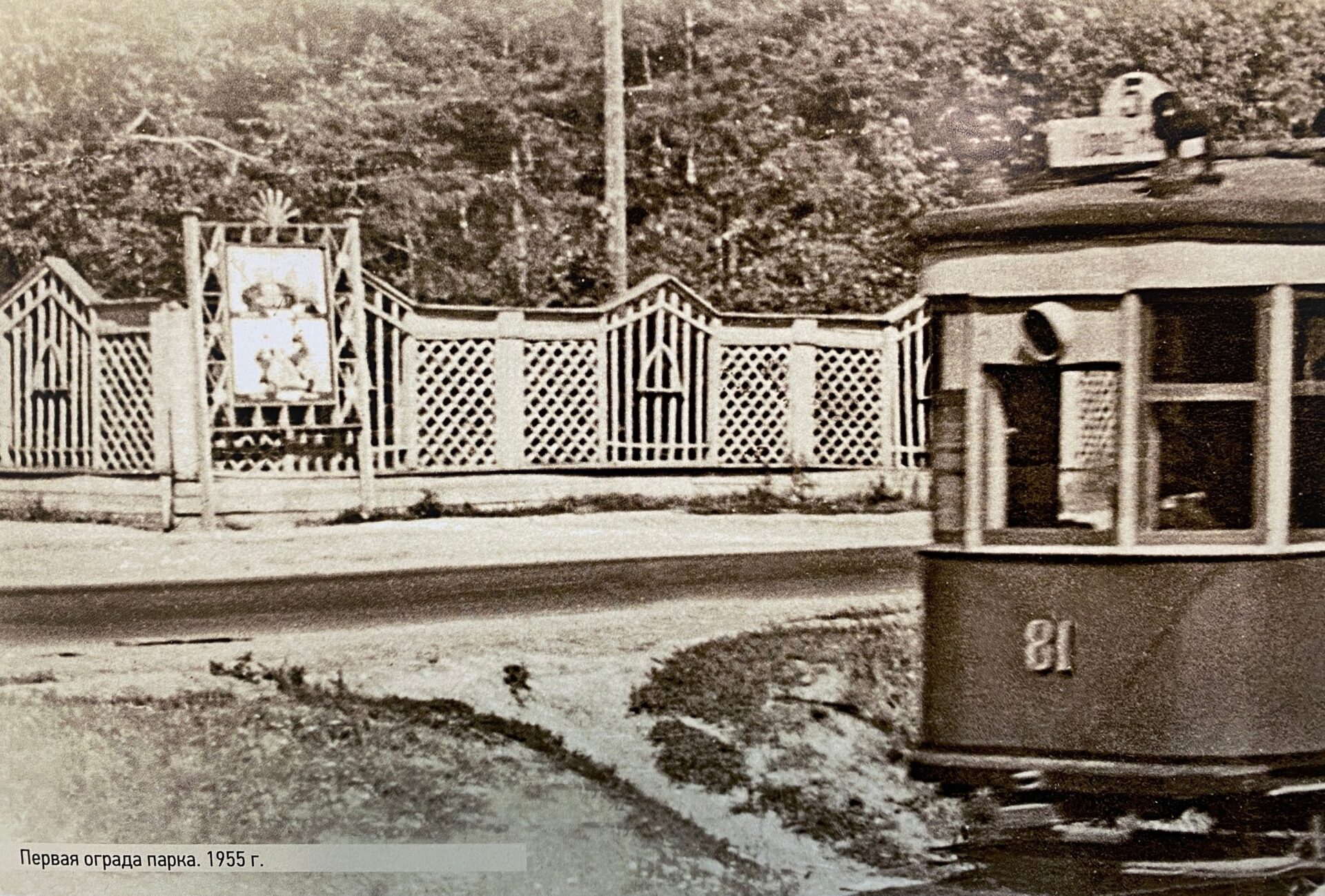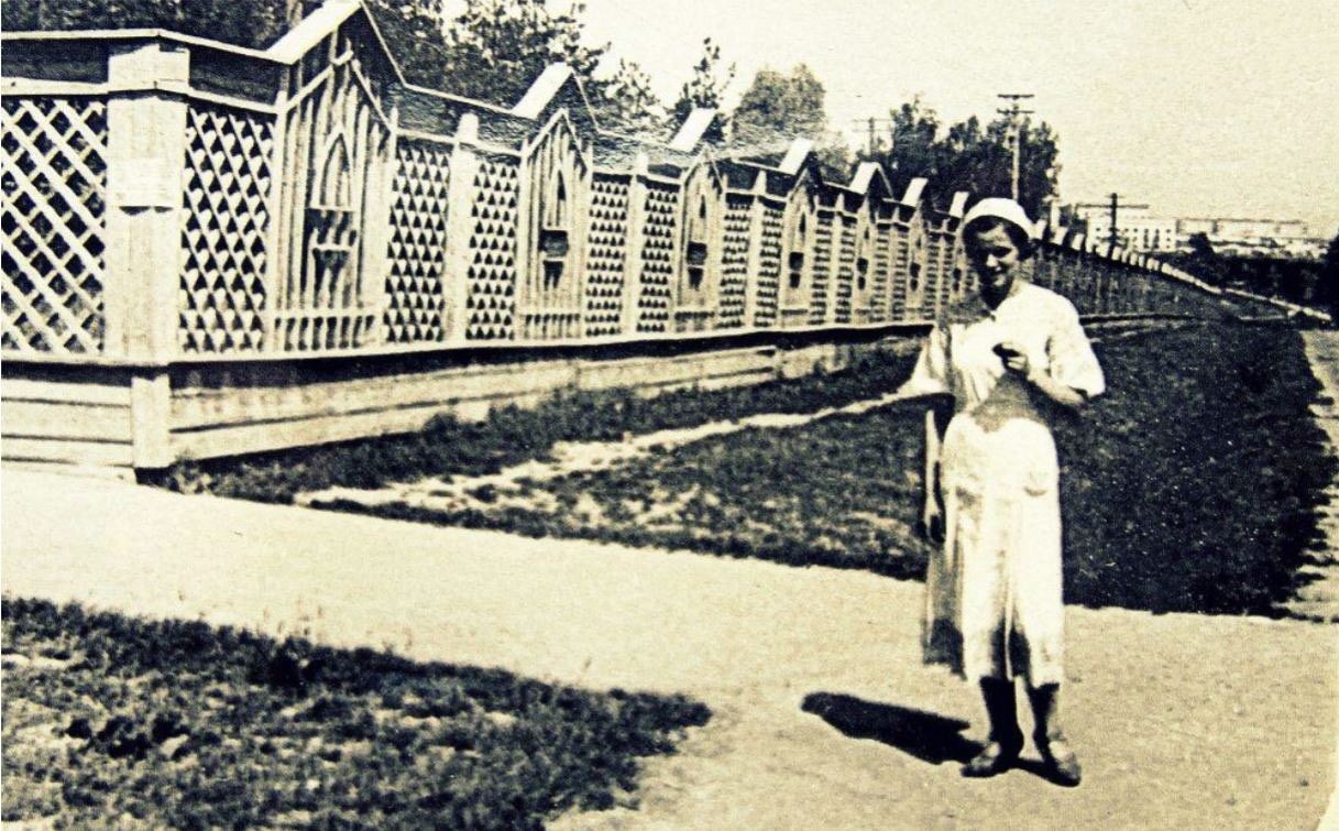 И ограда «Сада имени Петра Кринова» /напомним, именно так назывался парк в те годы/ была выполнена на славу: деревянная, с незамысловатыми, но разнообразными рисунками фрагментов, высокими колоннами с капителями, окрашена светлой краской.
