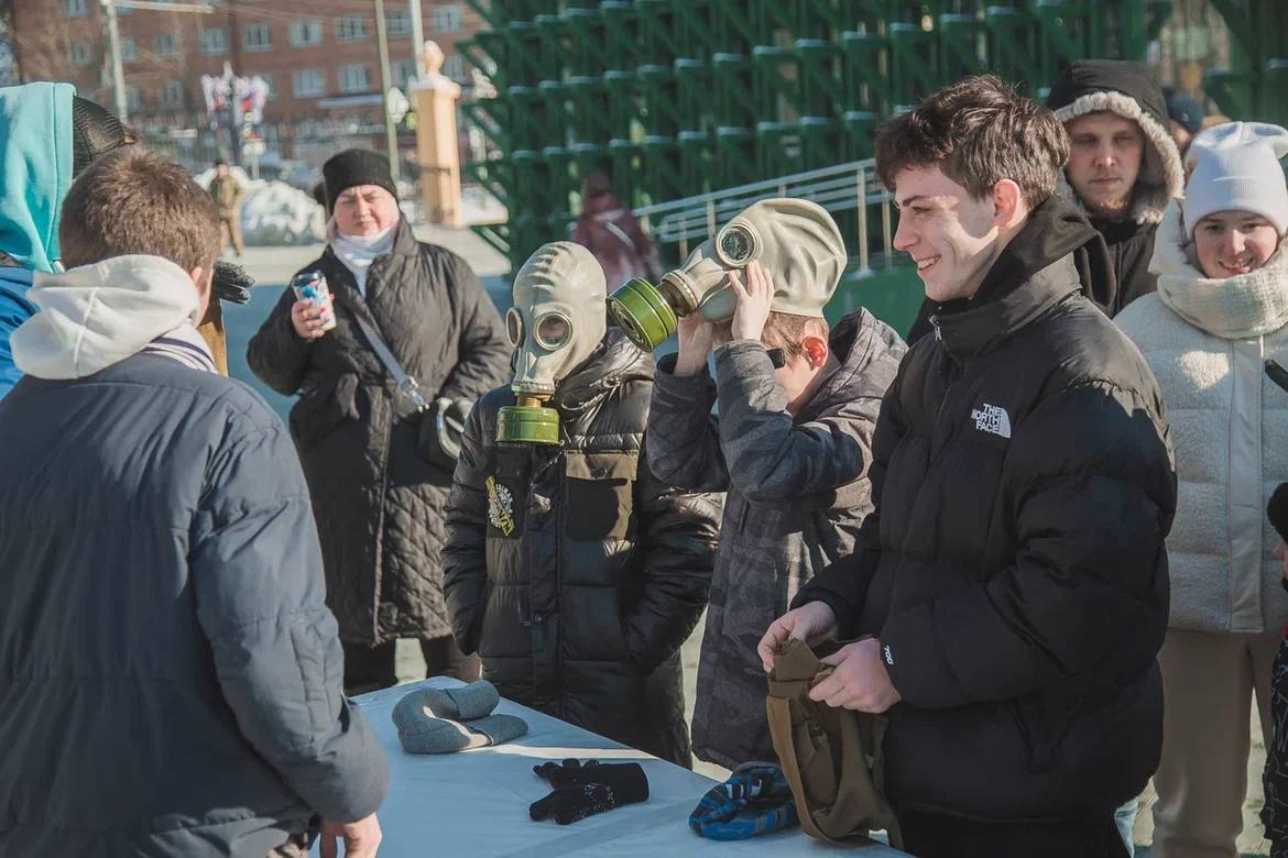 Раз – одеваем противогаз.