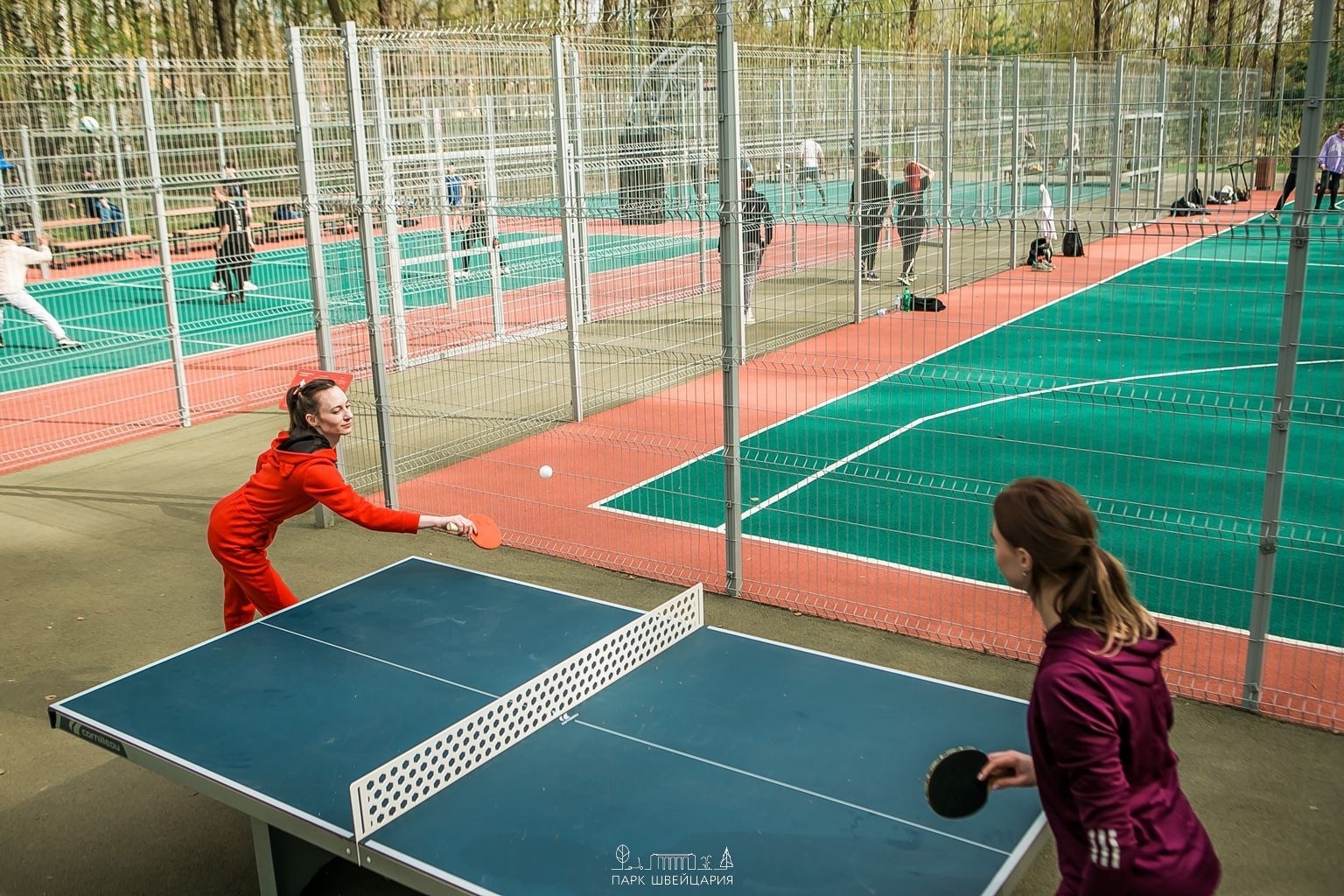 Беговое кольцо, скейт – парк, мини-футбольное поле, площадка игровых видов спорта, на которой находятся теннисные корты, баскетбольное и волейбольное поля, стрит-бол — в полной готовности к занятиям и играм.